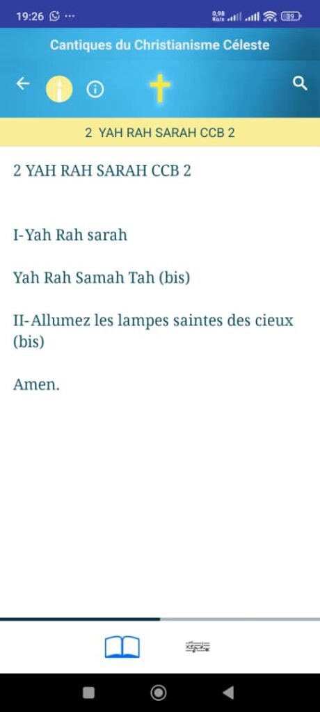 Notre méditation porte aujourd’hui sur le cantique n°2 : Yah Rah Sarah, un cantique qui, à l’instar du cantique n°1, est classé dans la catégorie des chants cérémonials, précisément dans la section Processionnel et allumage des bougies.